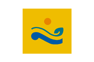 The flag is divided into yellow and dark blue where the 'yellow' represents the earth and the agriculture-orientation of the Province, and the 'blue' represents the waters, as the Province is surrounded by then sea on three sides. The 'yellow' and the 'blue' meet in the middle to represent the meeting of the ocean and the land striving towards eternal prosperity. The leaf of the rice plant represents the city. The grains of the rice plant represents the solidarity and unity of the districts (Kun), while the fish represents the marine products of the Province. The symbol represents 'C' of 'Cholla', which stands for the abundant and progressiveness of the industrial aspect of the Province and 'N' for 'Namdo or South' and the (anchor) which stands for the waters and the marine development of the Province.
