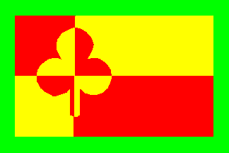 a cloverleaf of 3/5 flag height with a straight stem, countercharged; and a green border with a width of 1/10 flag height.