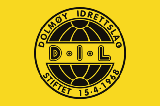 The flag of Dolmøy IL (Dolmøy Idrettslag) from Kjerringvåg on Dolmøya Island in Hitra Municipality is yellow with the badge centered.