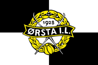 The flags of Ørsta IL (Ørsta Idrettslag) from Ørsta are black and white, either as a bicolor or quartered, with the badge centered.