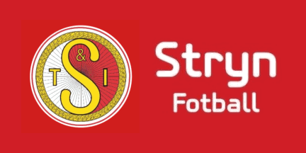 The flag of Stryn Fotball, football team of Stryn TIL (Stryn Turn- og Idrettslag) from Stryn is red with the logo and name.
