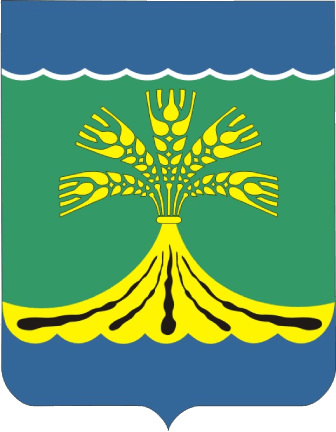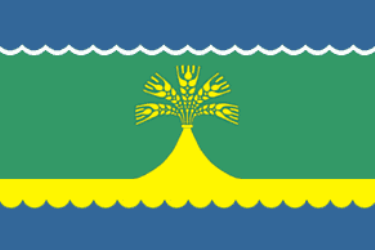 In a green field with an azure scale-like thread-like head bordered with silver and an azure scale-like tip, a golden mountain from the flat top of which grow five golden heads of wheat ears, laid in a fan shape.