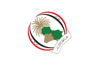 The logo of the governorate has two Iraqi national flags curved to the sides, emerging from a bronze-outlined ribbon which reads the governorate name in Arabic. In the center, a bronze palm tree for its popular cultivation here. Over it, a green map of Iraq appears with the governorate highlighted in bronze. As typical, no adoption date for the logo is known, but the modern variant was created in late 2024.