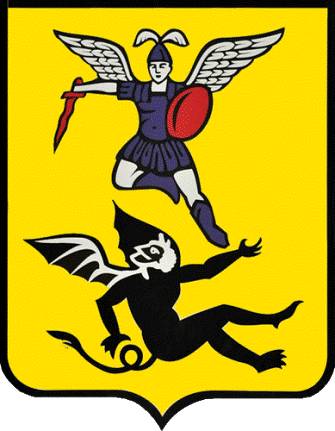 golden shield, defeating a black devil. This is the same coat of arms from 1780.