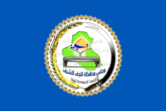 The flag of Najaf Governorate consists of a white field with the governorate logo centered upon it.