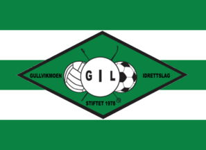 The flag of Gullvikmoen IL (Gullvikmoen Idrettslag) from Namsos is horizontally banded green-white-green-white-green with the logo in the center.