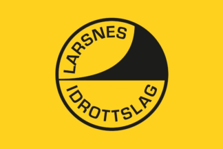 The flag of Larsnes IL (Larsnes Idrettslag) from Larsnes in Sande Municipality is yellow with the logo centered.