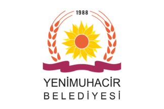 The flag of Yenimuhacir (photo) is white with the municipality's emblem. "Belediyesi" means "Municipality".