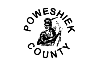 Archived copies of the pages about Poweshiek County is still at web.archive.org/web/*/www.iowacounties.org/County+Info/History+Pages/poweshiek.htm and web.archive.org/web/*/www.iowacounties.org/County+Info/Flags/Poweshiek.htm. It is a ~2:3 plain light (white?) flag showing an emblem centered on it. This emblem consists of the words "Poweshiek County", set in large black sans serif capitals in two arcs, above and below a depiction of a Native American, seen from waist up, with typical feather cap and holding an arrow bow.