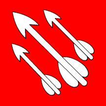 The Arms of Bilje, Croatia; Flag of Nottingham, UK; Arms of Belica, Croatia