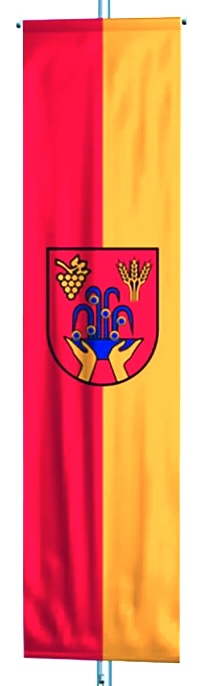 The communal website presents two variants of the CoA: one with the heraldic golden tincture, the other one with the colour yellow. The official colours are red and yellow.