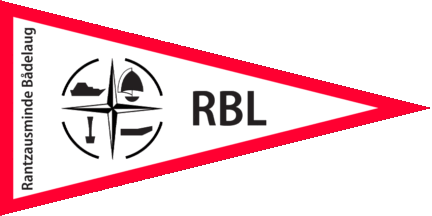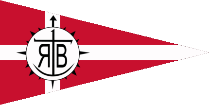 The pennant is red, at hoist is a blue inscription "RB", surrounded by a white rope in circle with a reef knot at ist bottom.