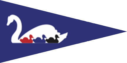 The pennant is dark blue with a white swan facing the hoist and in front three cygnets facing the fly and colored red, blue, and black.