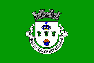 It is a typical Portuguese communal flag with the coat of arms centred on a plain green field.