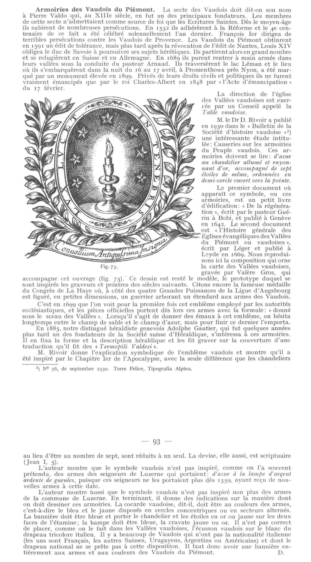 Finally a booklet in Italian is mentioned "Lo Stemma Valdese" translated as "Het embleem van de Waldenzen" (i.e. The emblem of the Waldensians) by Th. Balma, Tipografia Alpina, Torre Pelice, 1940.
