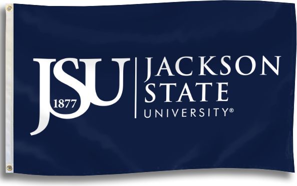Institutional flag is a white seal on light blue field, with "Jackson State"