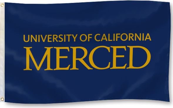 A colour photograph shows the flag of UC Merced as blue with the seal of the