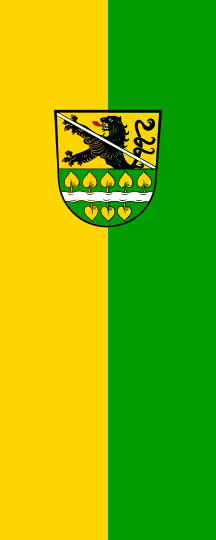 It is a green-yellow vertical bicolour. The coat of arms is shifted towards the top.