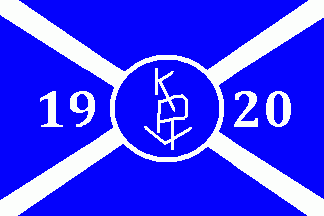 The blue flag was parted by white saltire. On centre in a white annulet was a white inscription (handwriting) in bend and intertwined "KRV". At hoist was a white number "19", at fly a white number "20"