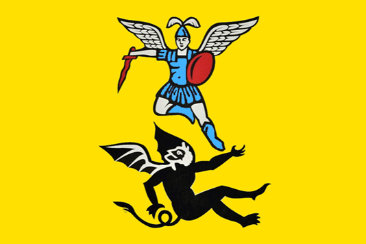 golden shield, defeating a black devil. This is the same coat of arms from 1780.