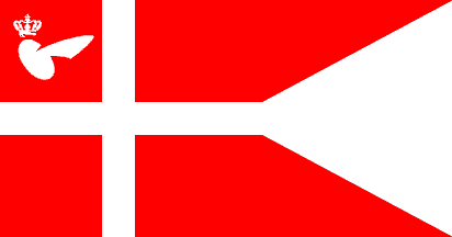 The State Flag/Naval Ensign of Denmark; Flag of Danish railways; State/War Flag of Norway
