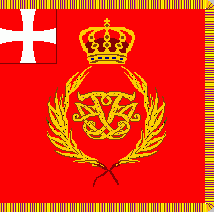 On centre is also a golden inscription flanking the wreath "GARDES" (hoist) "DANOISES" (fly) (= Danish Guards).