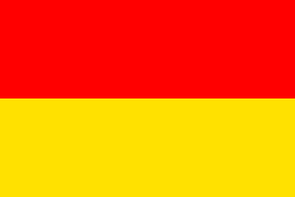 A bicolore flag of red over yellow is flown on the belfry: photo, photo (2016), photo (2018).