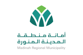 The flags of flags of Medina (al-Madinah al-Munawwarah) are white with the logo and name in Arabic and English.
