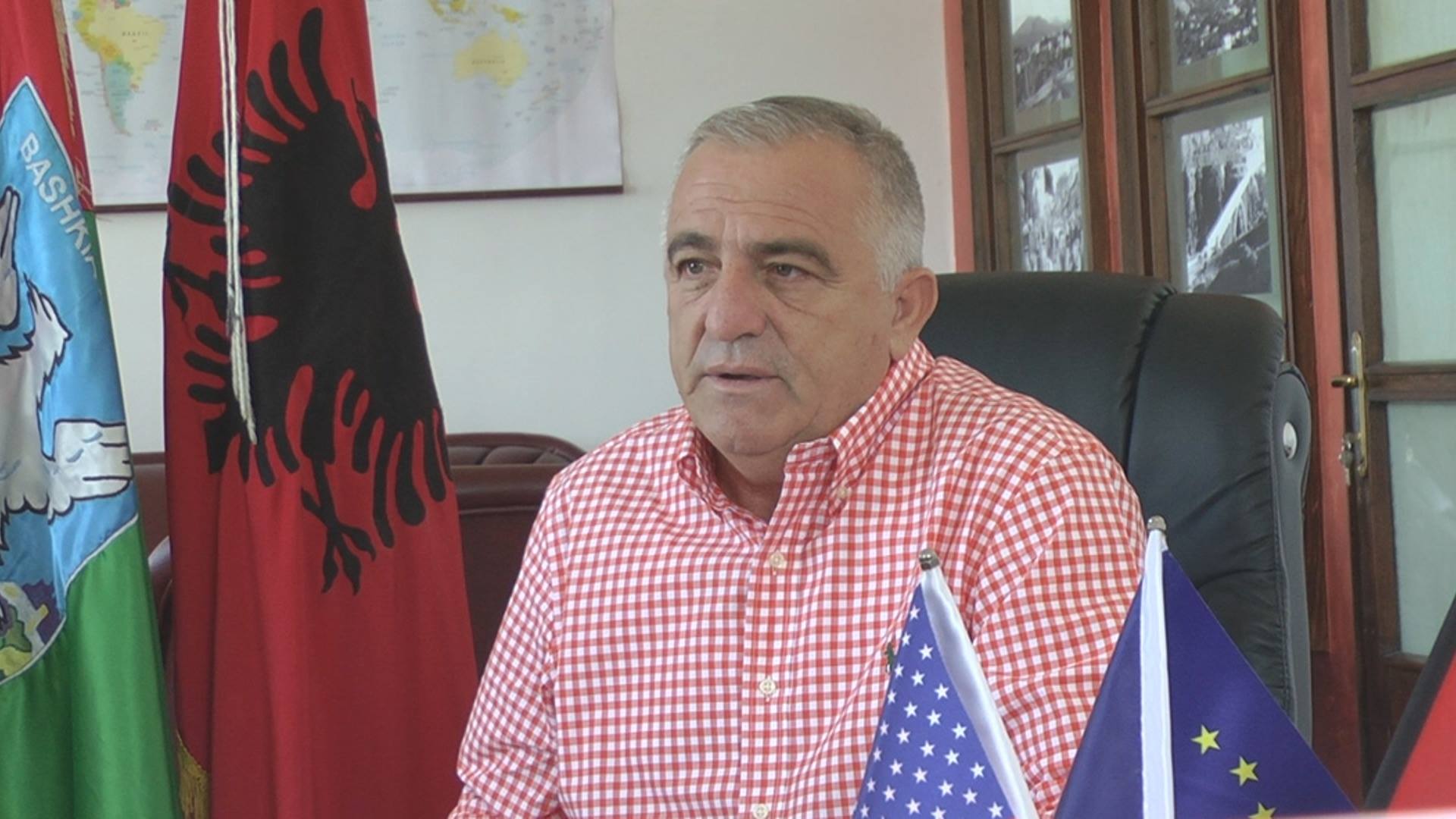 The flag of Pukë (photo, photo) is vertically divided red-green with the municipal coat of arms in the center. "Bashkia" means "Municipality".
