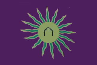is garnet red with a yellow sun having 16 green rays outlined in yellow and the