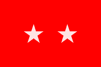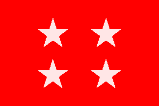 In addition to the military color, particularly distinguished units are apparently authorized a second flag known as a bandera coronela (colonel's color). The photos I have seen show this as a red field with a large white five-pointed star. In the angles of the star are the names and dates of battle honors surrounded by laurel wreaths, all in gold, while in an arc above the star is the designation of the unit, also in gold. The flag is surrounded by gold fringe; the finial seems to be a star.