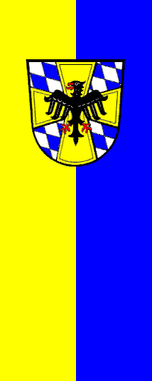 Yellow-blue, flag and arms approved 3 October 1963. During the 1972 municipal reform, this county was merged with Aichach county (of Oberbayern district) to form the new county Aichach-Friedberg.