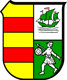 The right part of the arms shows the bars of the Counts of Oldenburg.