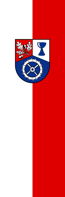 The branch is referring to local oak groves. The chalice to a glas kiln, which had been here since the 16th century. The wheel is reminding on three former watermills in the municipality.