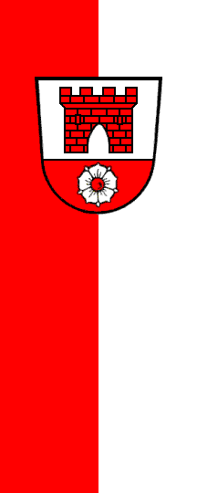 Flag and arms were approved on 7 September 1960. The shield displays in a silver (= white) field a canting red castle (German: Rote Burg), which is also part of the arms of the city of Rottenburg. The silver rose is taken from the arms of the 13th century Counts of Moosburg, who had many estates in the area and who added the title Von Rottenburg to their name. In the late 13th century the possessions were sold to the Dukes of Bavaria.