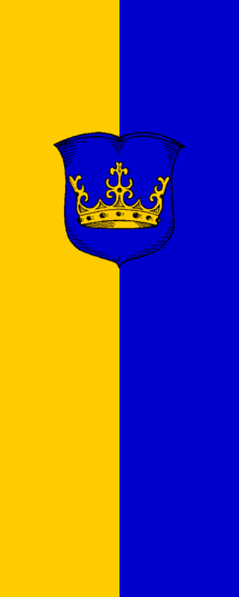 Since about 1557/1562 Kraiburg uses the arms blazoned Azure a crown Or. The arms were readopted on 3 October 1972. At the same time a new flag was adopted: yellow-blue colour bearing the arms in the upper third. The old flag (of unknown origin and unknown date) had been green-white.