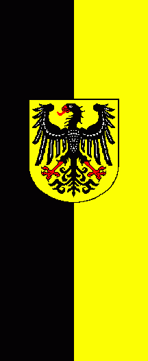 It is a black - yellow vertical bicolour. The coat of arms is slightly shifted to the top.