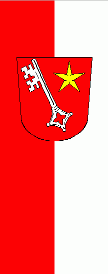 The ratio is unknown. It is a vertical red - white bicolour. Key and star as described above are placed onto a red bannerhead.