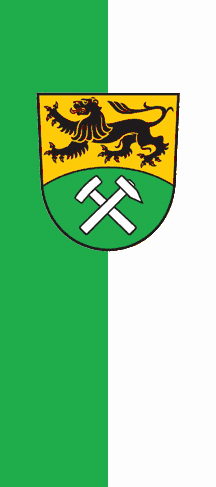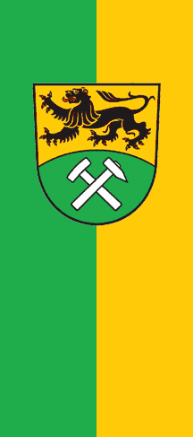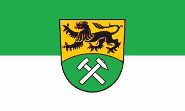 The flag is horizontally divided green-yellow (1:1) with the CoA of the county of Erzgebirgskreis in the center of cloth.