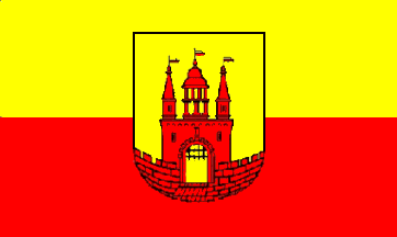 topped by the cities flag without coat of arms. The castle has an open