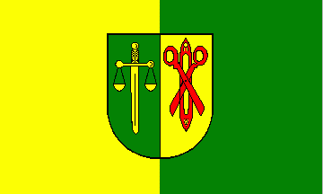 The ratio is 3:5. It is a green - yellow vertical bicolour. The coat of arms is in the centre of the flag.