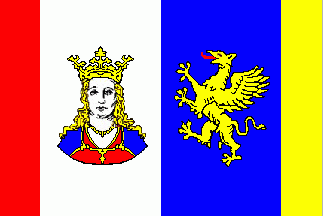 The flag was approved on 5 January 1999 by minister of interior of Mecklenburg-Westpomerania, the coat of arms on 27 January 1993.