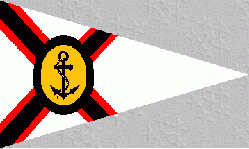 Burgee: It is a white pennant, divided by a black saltire, fimbriated
