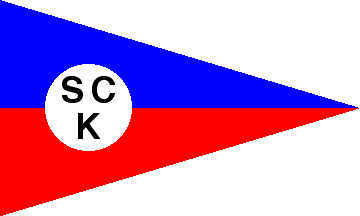 Horizontally divided blue-red with the letters S C K in white forming a triangle inscribed in a white disc. Lake Krüpel is formed by the river Dahme, southeast of Berlin.