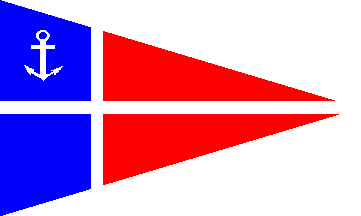 Blue pennant with a broad white Scandinavian cross and a red anchor fouled in white in the middle of the cross.