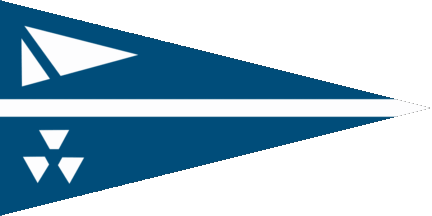 The pennant is blue shifted to hoist is a white fleur-de-lis flanked in base by two 5-point stars of the same. The fleur-de-lis in all Odense watersports clubs is taken from the Købstadsvåben of Odense City.