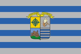 The flag of Villanueva de la Serena has the same stripes as the Catalan one but with blue and grey colours; it also has a coat-of-arms but I couldn't get it.