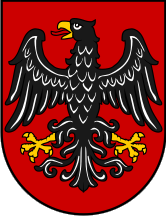 The coat of arms of Donji Lapac is "Gules an eagle displayed sable armed or and langued of the first".