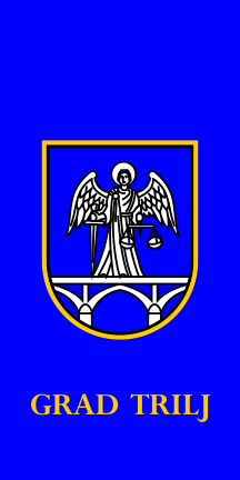 The flag of Trilj is described in Article 6 of the Statutes as in proportions 1:2, blue with the coat of arms in the middle.