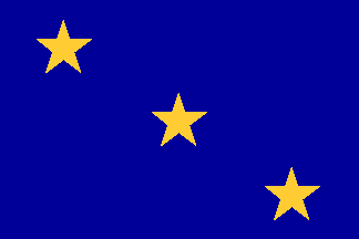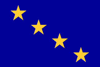 Rectangular (2:3) blue ensign with four five-pointed yellow